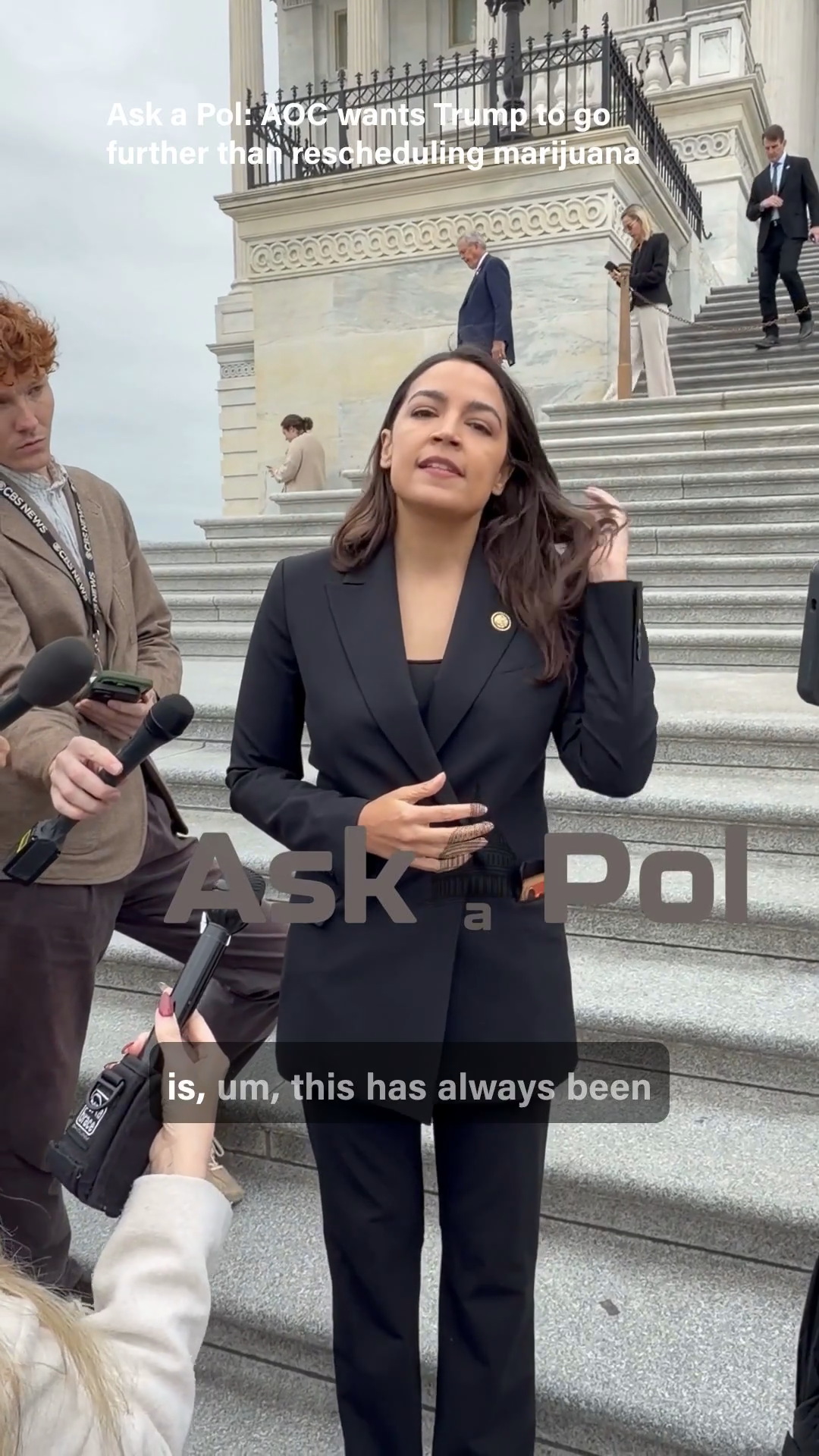 Playback speed×Share postShare post at current timeShare from 0:000:00/Playback speed×Share post0:00/PreviewAudio playback is not supported on your browser. Please upgrade.1AOC: Marijuana rescheduling reduces one harm — but “doesn’t quite make all of the wrongs right”Ep. 119 — Rep. Alexandria Ocasio-Cortez (4-29-2026)Matt LasloApr 30, 2026∙ Paid1ShareWho?Rep. Alexandria Ocasio-Cortez (D-NY)LISTEN: Laslo & AOCContinue reading this post for free, courtesy of Matt Laslo.Claim my free postOr purchase a paid subscription.Ask a Pol politicsAsking your lawmakers your political questions at your US Capitol.Asking your lawmakers your political questions at your US Capitol.SubscribeListen onSubstack AppApple PodcastsSpotifyYouTube MusicYouTubeOvercastPocket CastsRSS FeedAppears in episodeMatt LasloRecent EpisodesPam Bondi watch: "She needs to show up,” Dems fear former AG will skip out on Congress (again)16 hrs ago • Matt LasloIn face of record low disapproval, Congressional Republicans blame the mediaApr 25 • Matt LasloHegseth has ‘thinnest skin,’ mocks veteran and West Point grad, Rep. Pat RyanApr 24 • Matt LasloPresident Trump, Joe Rogan & RFK Jr unveil new psychedelic research measureApr 18 • Matt LasloEXCLUSIVE — AOC on infamous NYC prison: “Not just about closing Rikers but what we turn it into”Apr 18 • Matt LasloWATCH: Echoing Melania Trump, Rep. Luna’s pushing GOP leaders for Epstein survivor hearingApr 17 • Matt LasloRep. Jamie Raskin says it's "sad" Republicans are dismissing calls for 25th Amendment commissionApr 16 • Matt Laslo