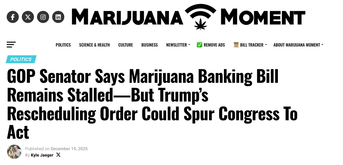 President Donald Trump’s rescheduling of cannabis — how would that, maybe, affect your SAFER Banking Act?