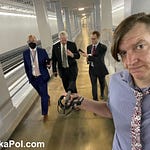 SCENE: In the basement of one of the US Senate Office buildings, Ask a Pol’s Matt Laslo bumps into Sen. Adam Schiff and three aides as they make their way back to their office after the Senator voted in the US Capitol.